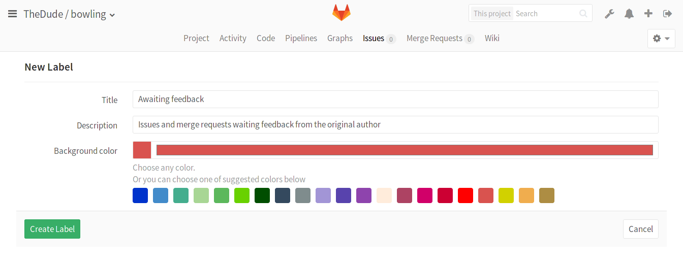 Create a new label right from the issue tracker